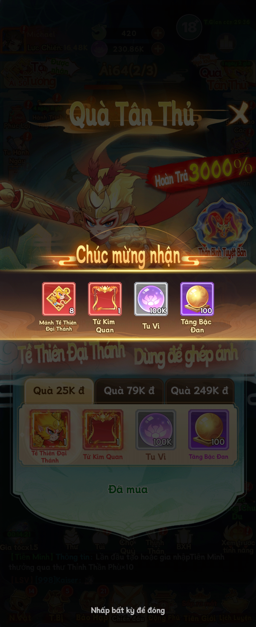 - Thiên Mệnh Nhân chọn đúng máy chủ và tên nhân vật tiến hành mua gói nạp.