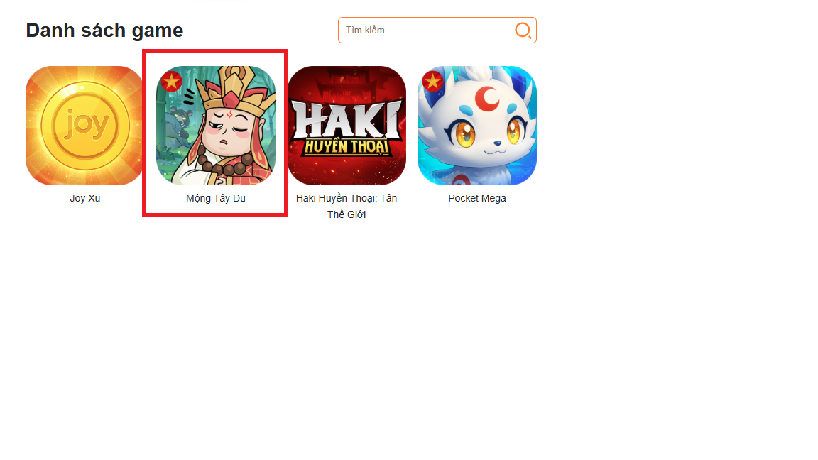 - Tại giao diện này, Thiên Mệnh Nhân chọn game Mộng Tây Du, để bắt đầu tiến trình nạp của mình.