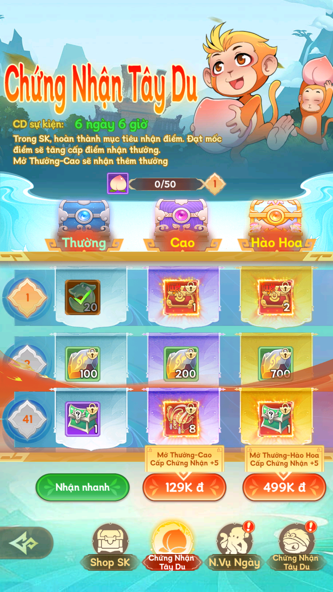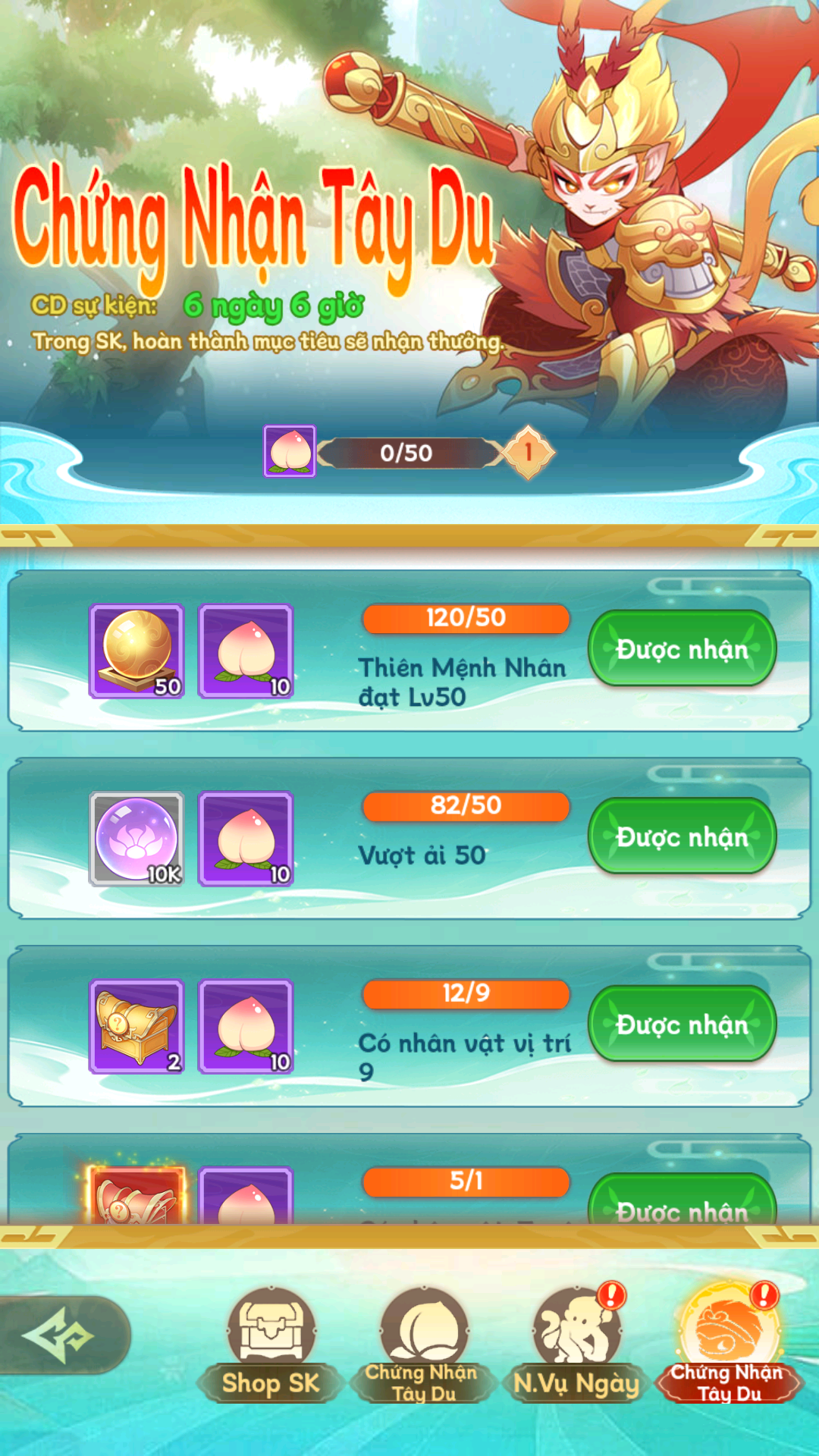 Hoàn thành yêu cầu nhiệm vụ ngày để nhận linh thạch và Đào Tiên - Vật Phẩm thăng cấp Chứng Nhận Tây Du