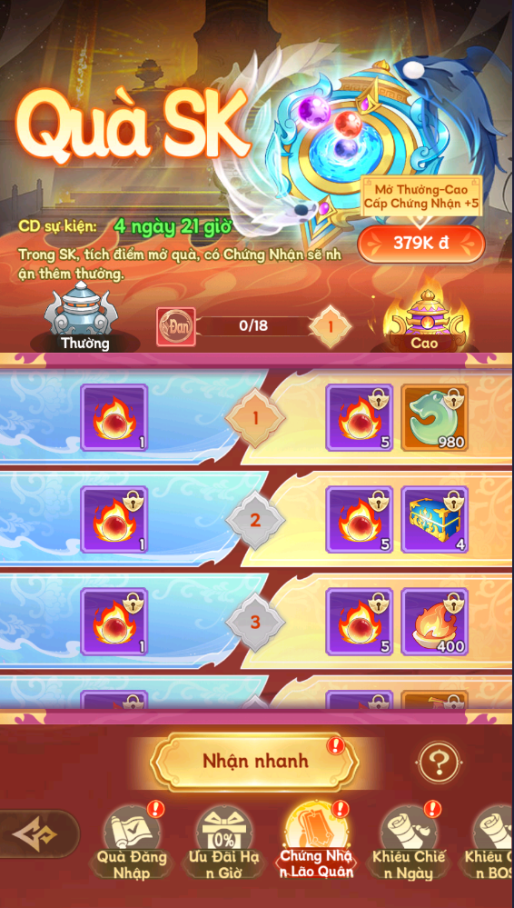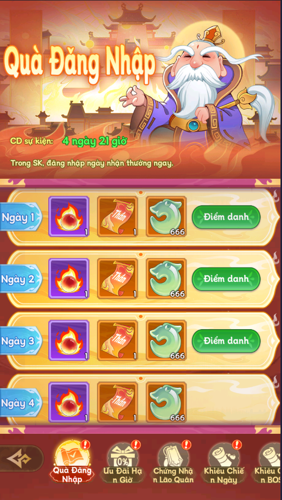 Nhận Sí Viêm Châu và Linh Thạch với mỗi ngày đăng nhập vào sự kiện