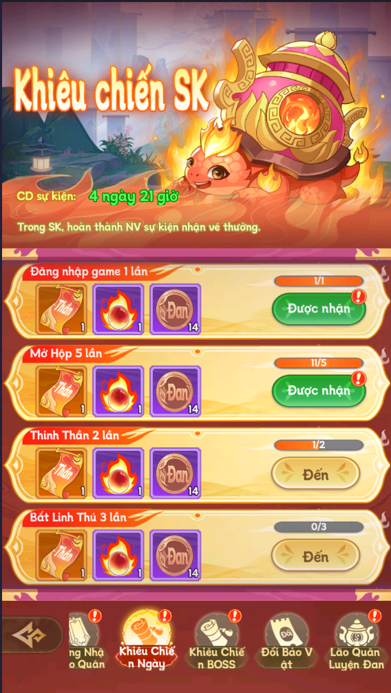 - Đủ 5 loại Kim Đan sẽ nhận được thưởng lớn Tụ Linh Đan