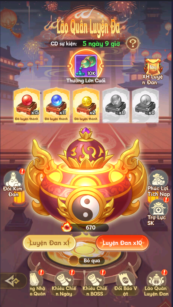 Thông tin các sự kiện trong chuỗi sự kiện Lão Quân Luyện Đan