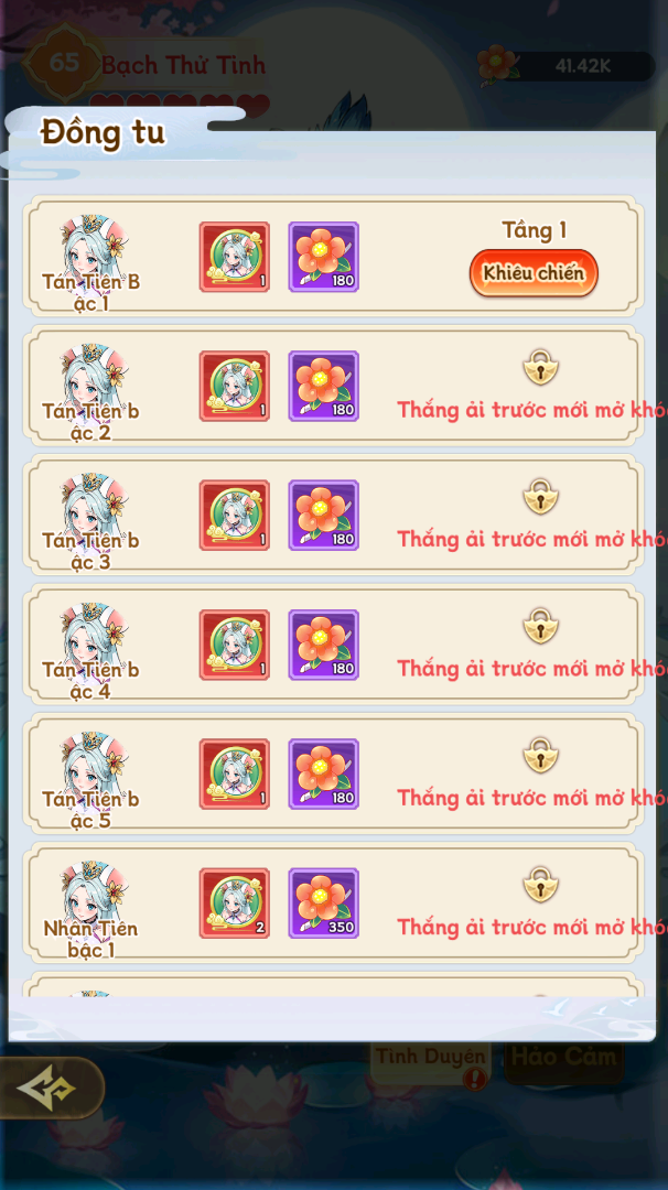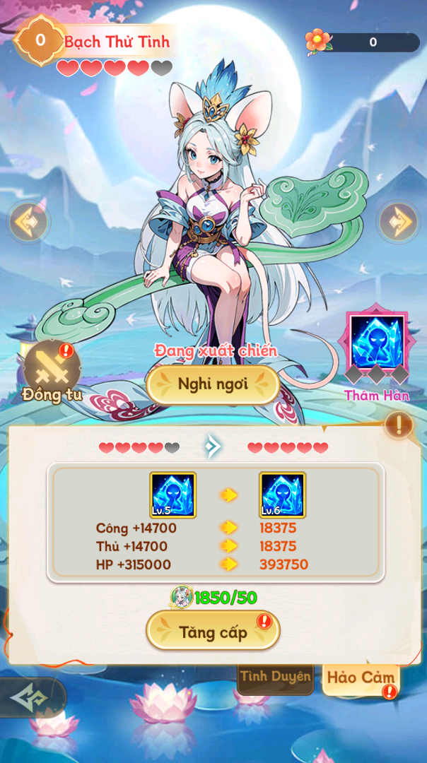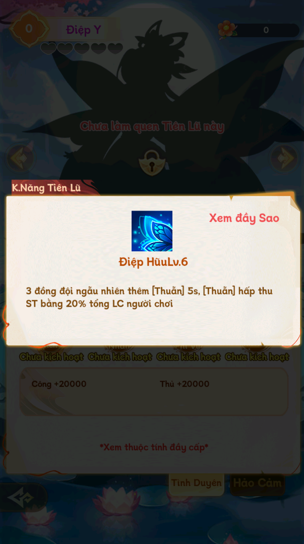 Tiên Lữ có tổng 5 cấp Hảo Cảm. Dùng mảnh Tiên Lữ để tăng cấp Hảo Cảm cho Tiên Lữ