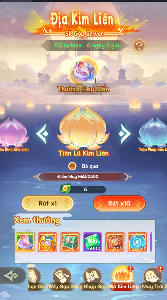 - Mở Kim Liên bằng vật phẩm "Quan Âm Lộ, mỗi lần mở tích lũy điểm may mắn, đầy thanh điểm may mắn chắn chắn nhận được thưởng lớn