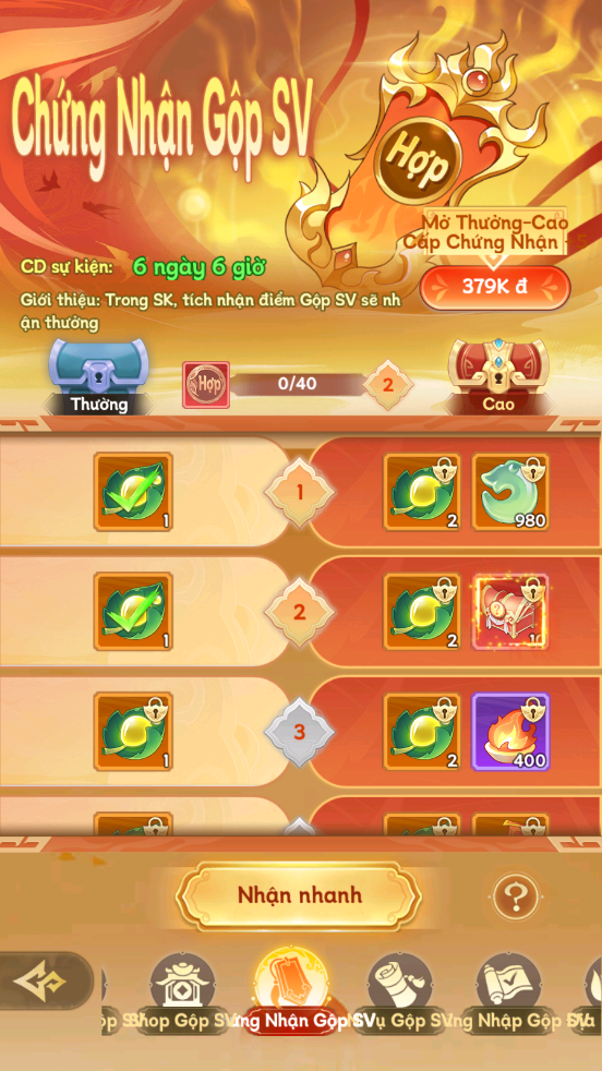 Hoàn thành yêu cầu nhiệm vụ ngày để nhận vật phẩm Điểm SK Gộp , tăng cấp chứng nhận