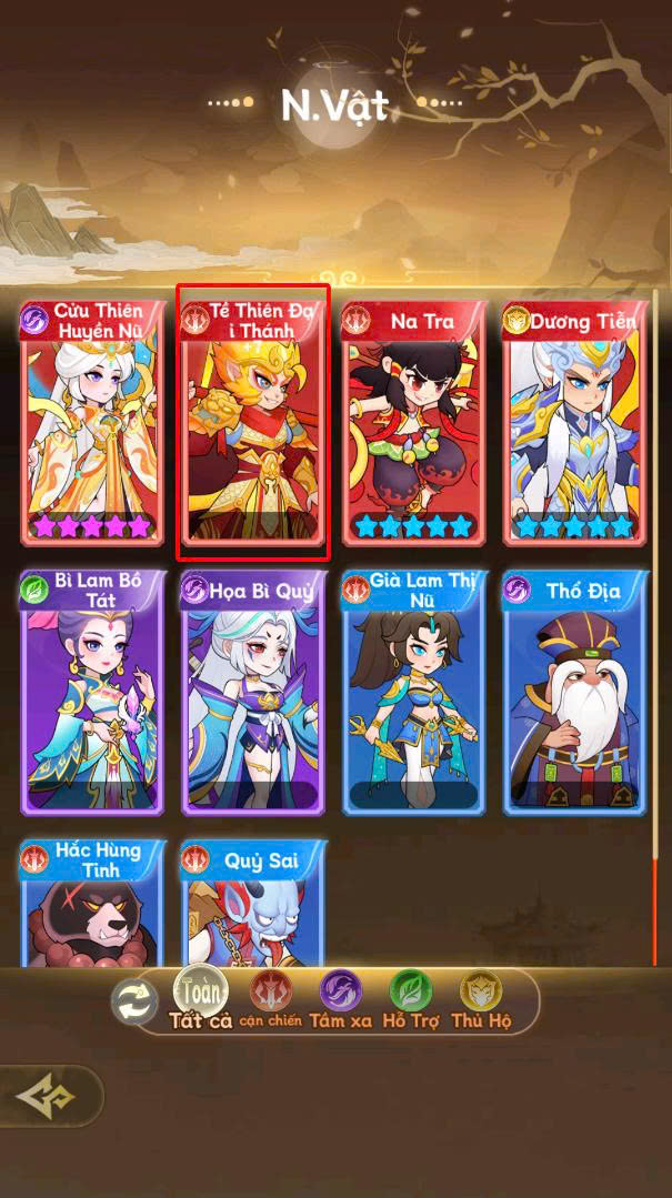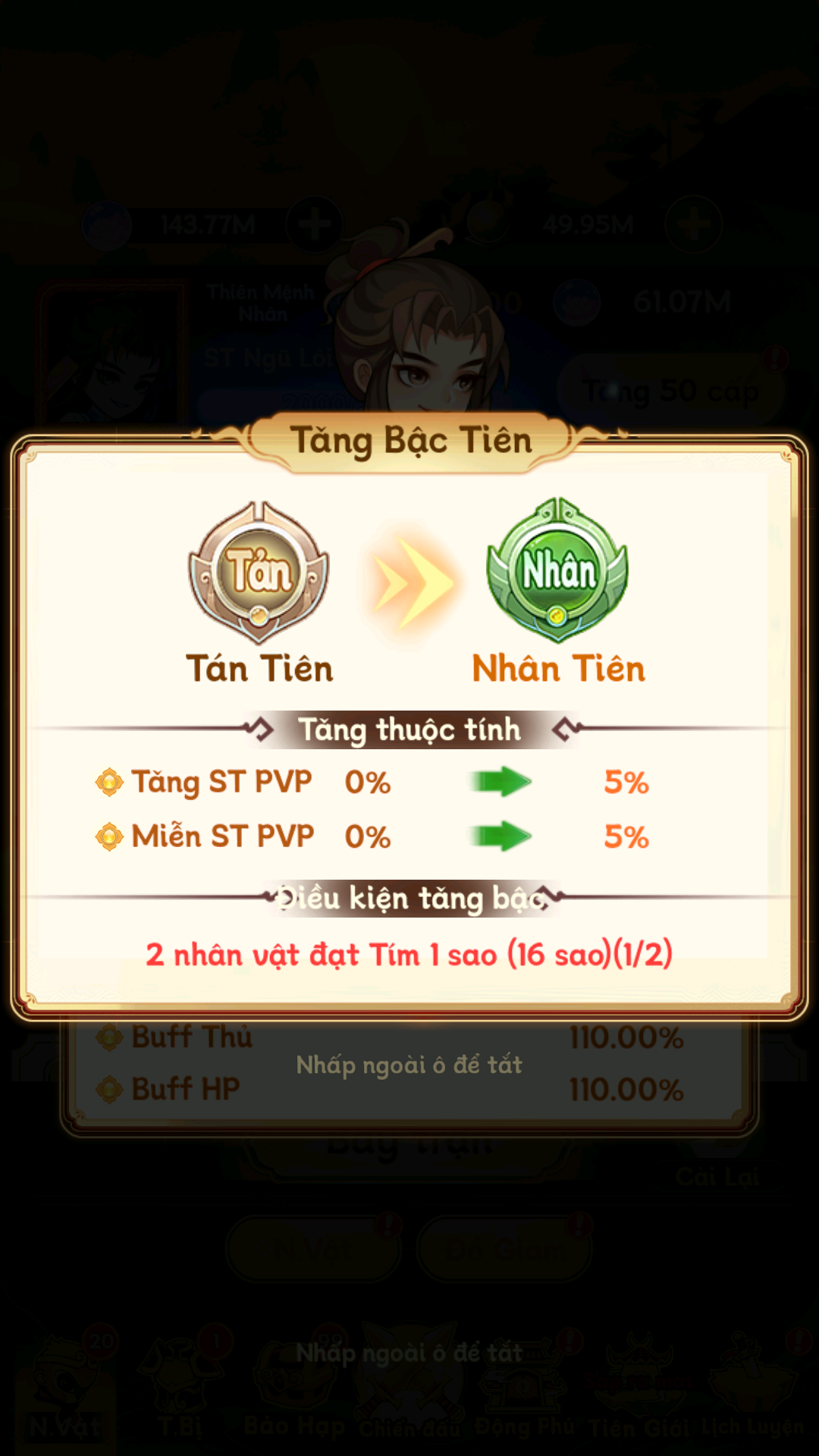 Để tăng sao cho tướng. Các Thượng Tiên vào mục N.Vật và Click vào icon của Tướng