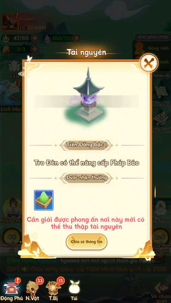 - Thám hiểm Tài Nguyên sẽ tốn Nguyên Khí