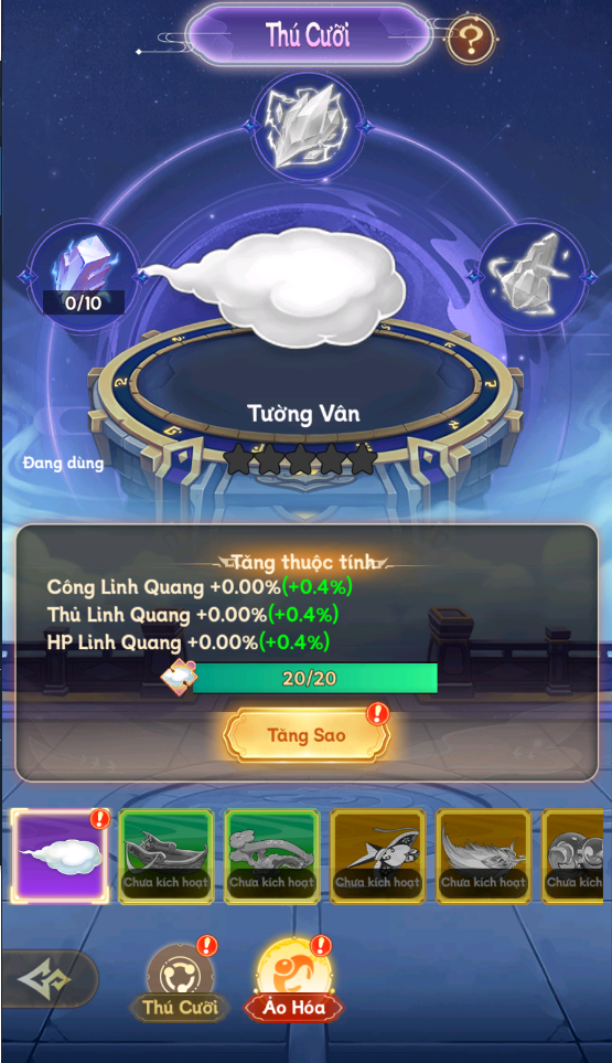 - Ở Tiên Giới sẽ có thể kích hoạt Thú Cưỡi và tăng cập sẽ cộng thuộc tính cho tất cả tướng đang tham chiến