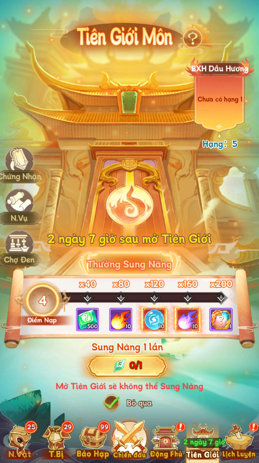 - Sau khi mở Tiên Giới Môn, hệ thống sẽ xếp hạng theo lượt xây dựng và phát thưởng thêm.