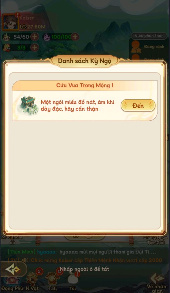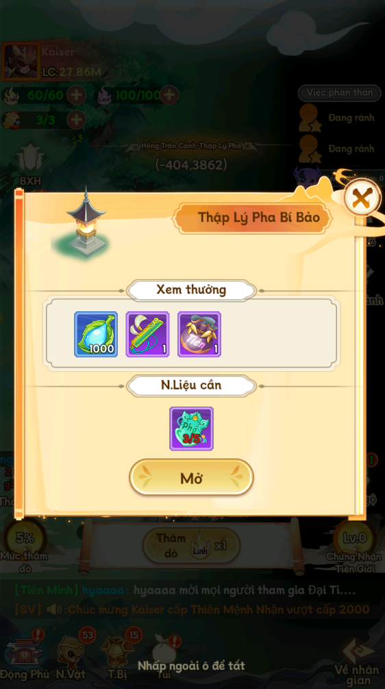 - Hoàn thành Kỳ Ngộ Mảnh Bản Đồ Tiên Giới - đạo cụ dùng để giải phong ấn của map tiên giới
